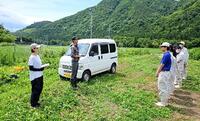 ①株式会社ユズファームワイナリー代表取締役・荒井様より農場説明をしていただきました。