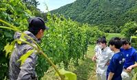 ①株式会社ユズファームワイナリー代表取締役・荒井様より農場説明をしていただきました。