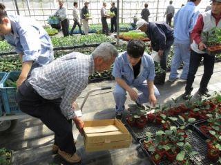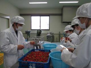 イチゴジャム製造(へた取り)