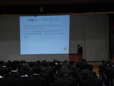 2年生の代表生徒が、インターンシップの報告を行いました。