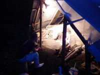 森林環境科森林専攻の3年生4人が青根演習林の学習センターに宿泊し,交代で火の番をしました。