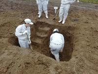 各クラス5~6人のグループに分かれて,深さ1.5~2m程度の穴を掘り土を採取しました。