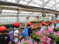 児童の皆さんは牛舎,製材機,草花温室,野菜温室を見学していきました。